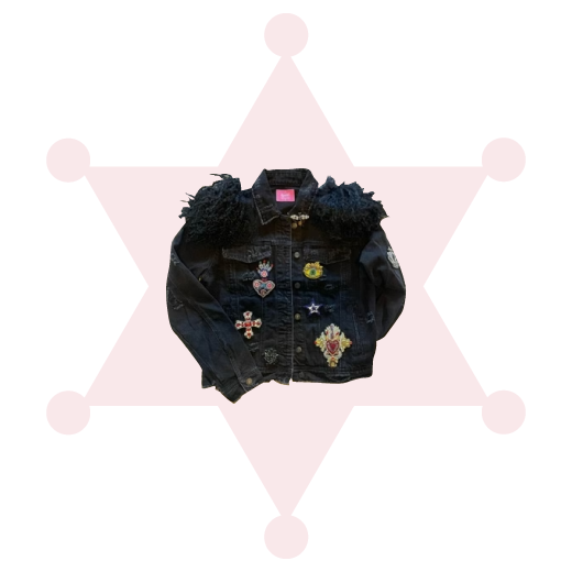 Denim jacket with hand-sewn crystal applications,